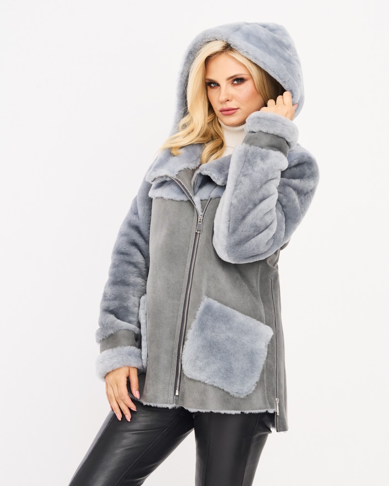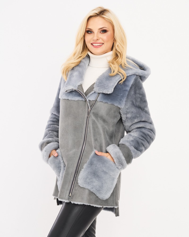 Prírodný dámsky kožuch Alexis sivý je ušitý z mimoriadne teplej a odolnej prírodnej ovčej kože, preto sa dokonale hodí na zimné obdobie. Vsadky v sivom odtieni z prírodného, na dotyk príjemného kožúška pozitívne ovplyvňujú dizajn modelu, dodávajúc mu výnimočný charakter. Kožuch má mierne asymetrickú dĺžku – zadná časť je jemne predĺžená – a končí približne v oblasti bedier. Vďaka tomu model umožní zvýrazniť tvar bokov, najmä ak ho skombinujete s viac priliehavými nohavicami.