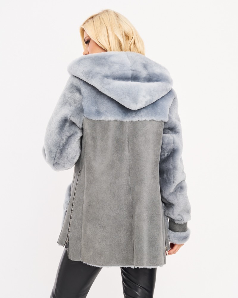 Prírodný dámsky kožuch Alexis sivý je zapínaný na šikmo vsadený zips z odolnej a pevnej nehrdzavejúcej ocele. Podobný zips sa nachádza po stranách, umožňujúci voľnú reguláciu obvodu. Takéto riešenie je obzvlášť praktické, keď chcete pod kožuch navliecť hrubšiu vrstvu oblečenia. Teplá kapucňa, ktorú si môžete nasadiť na hlavu, a dve praktické bočné vrecká sú nadčasovými prvkami, ktoré zvyšujú praktickosť modelu a zároveň jeho termoizolačnú funkciu.