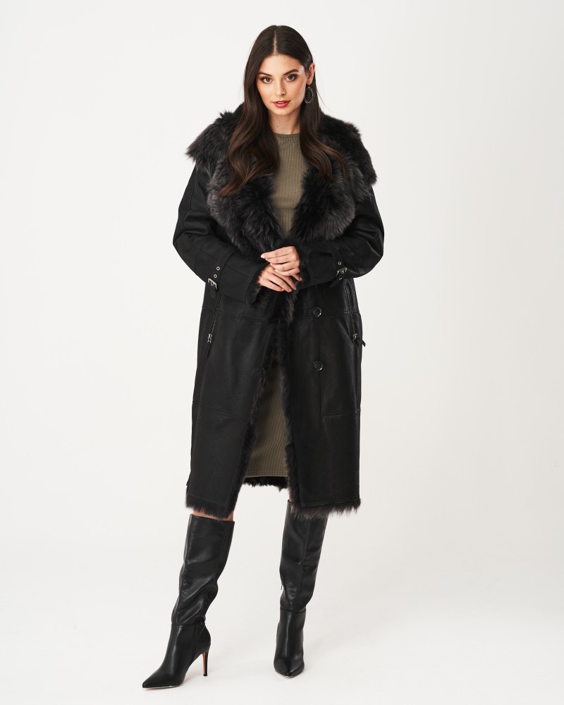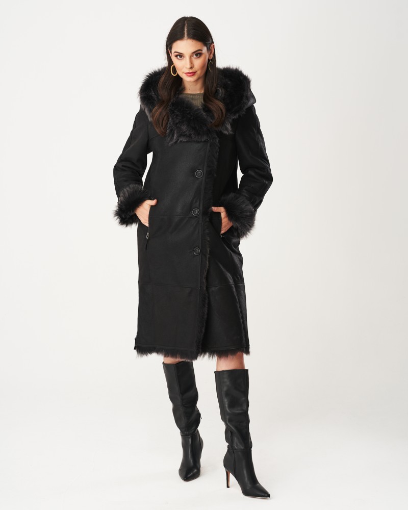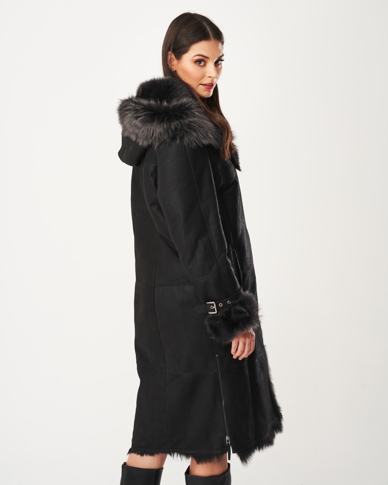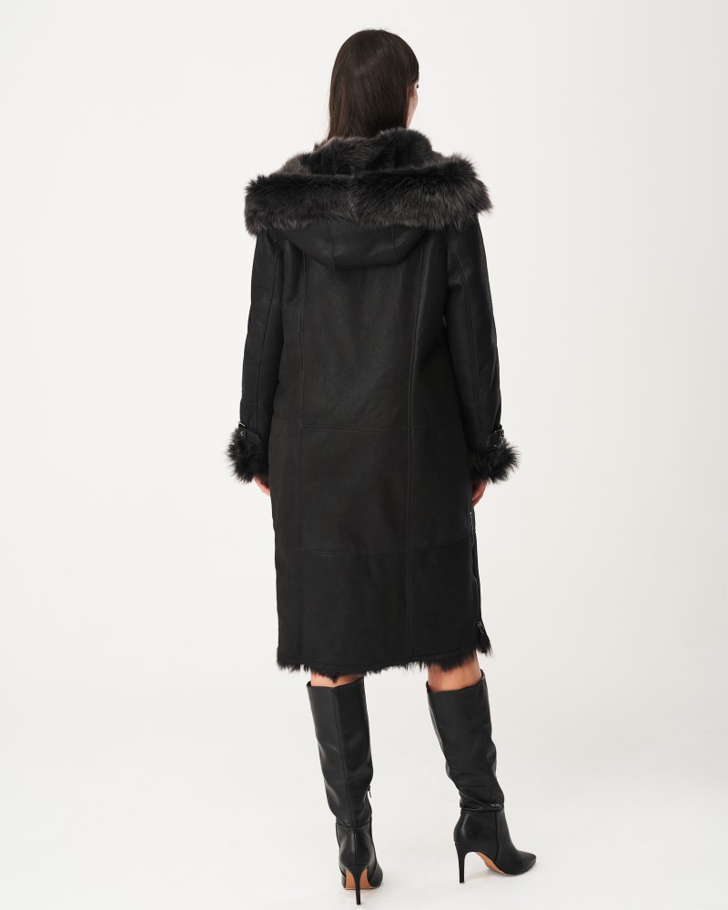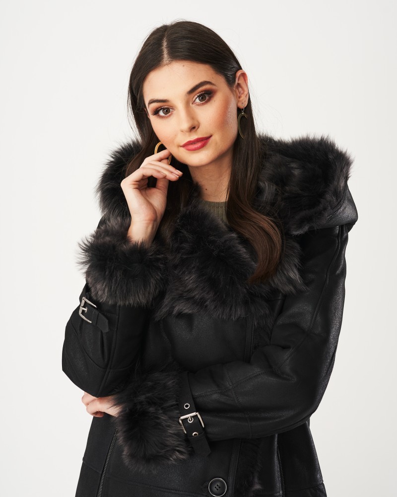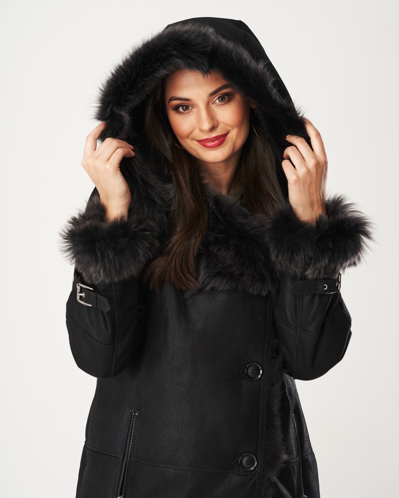 Dámsky kožuch Gabriella je projekt, pri ktorom sme venovali mimoriadnu pozornosť detailom. Priestranná kapucňa, ktorá poskytuje ešte väčšiu ochranu pred dažďom, snehom a vetrom, je olemovaná jemnou na dotyk, prírodnou líškou. Podobné riešenie sme použili aj pri rukávoch, ktoré sme navyše doplnili efektným zapínaním na pracky , umožňujúcim voľnú reguláciu obvodu rukáva. Celý kožuch sme ušili z prírodnej ovčej kože, ktorá je známa svojou odolnosťou a výdržou voči mrazu a snehu, pod vplyvom ktorých nikdy nepremokne ani sa nezničí, pričom zároveň zaručuje pokožke voľné dýchanie.