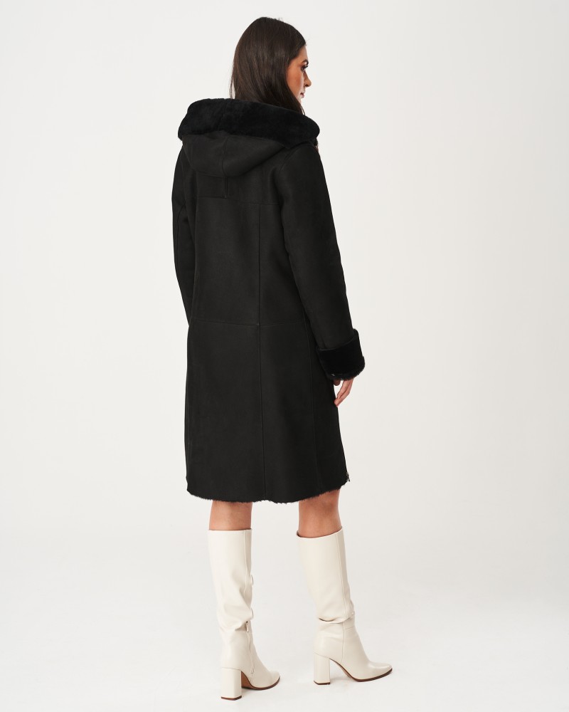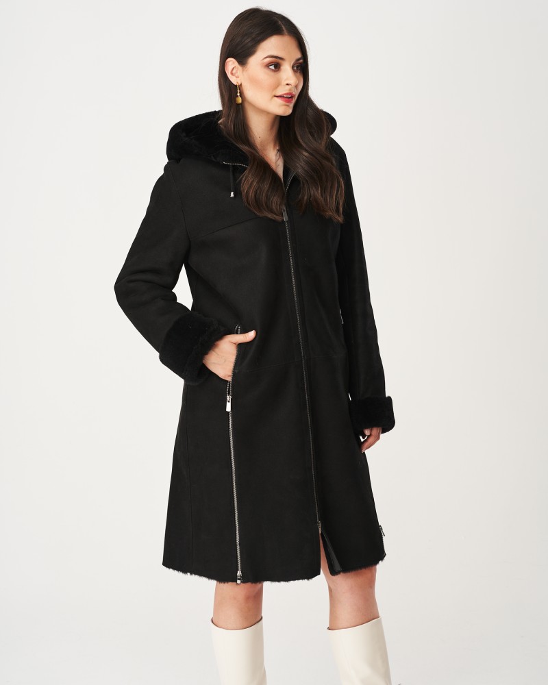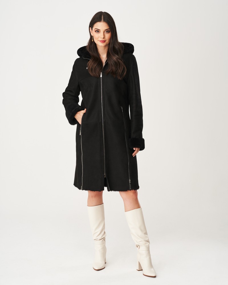 Dámsky kožuch Greta má mierne prispôsobený strih po kolená a praktickú, funkčnú kapucňu so šnúrkami. Ako pri nej, tak aj pri rukávoch sa nachádzajú vsadky z príjemného na dotyk, mäkkého kožušinka. Model je zapínaný na odolný zips z nehrdzavejúcej ocele, rovnako ako bočné vrecká. Mimoriadnu pozornosť si zasluhuje zips vedený po oboch stranách odspodu, ktorý nadväzuje na zips od vreciek. Po jeho rozopnutí získaš oveľa viac voľnosti pohybu a ešte viac zvýšiš komfort nosenia kožucha.