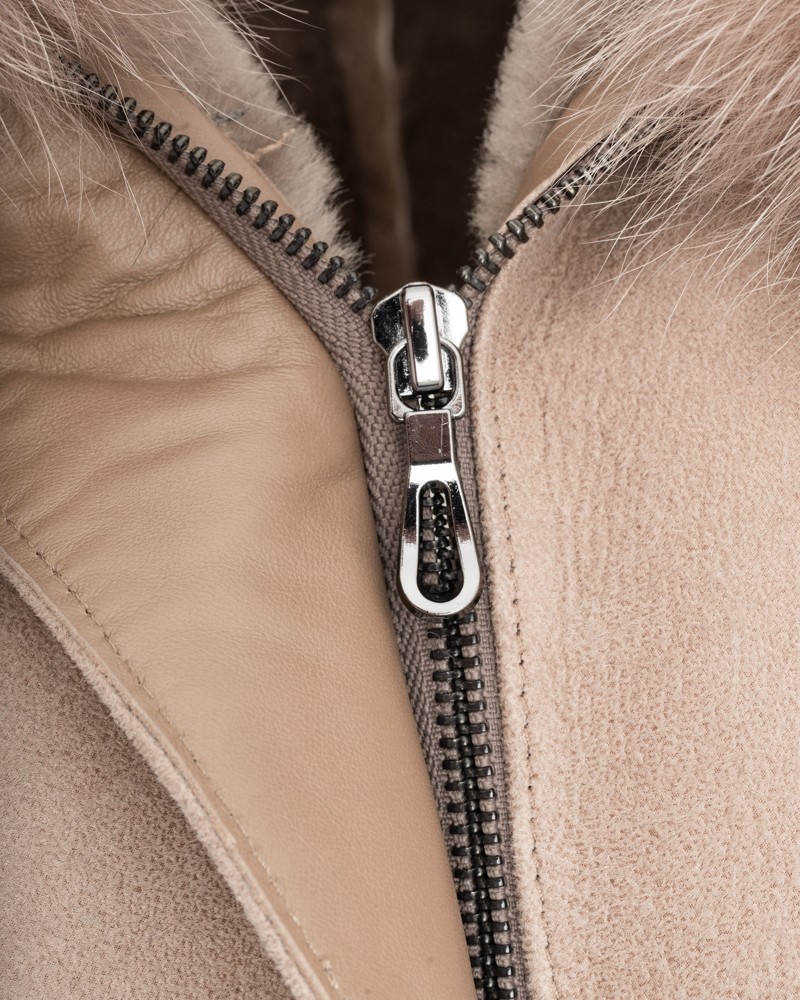 Dámsky kožuch Maja sa zapína na praktický a odolný zips z nehrdzavejúcej ocele, skrytý za elegantnou, ozdobnou légou vedúcou stredom kožucha. Výnimočnosť tohto modelu zvýrazňuje funkčná kapucňa priestranne obšitá prírodným, mäkkým líškom, ako aj pôvabné manžety vyhotovené s nadčasovým a stále módnym kožušinovým lemom.