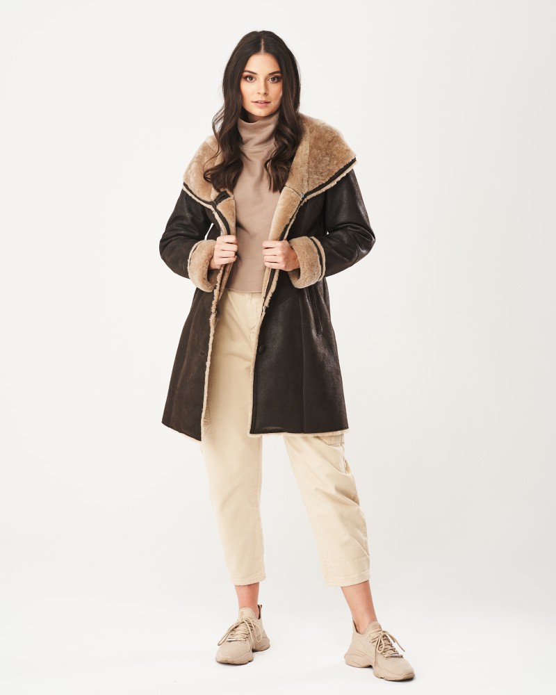 Dámsky kožuch Megan sme vytvorili s mimoriadnou precíznosťou, pričom sme použili vysokokvalitnú prírodnú ovčiu kožu, ktorá sa výborne osvedčuje v náročných klimatických podmienkach, ideálne chráni pred vetrom a zrážkami. Jednoduchý strih a dĺžka po kolená opticky zoštíhľujú postavu a mimoriadne vlastnosti prírodnej ovčej kože spôsobujú, že model neobmedzuje pohyb, zaručujúc maximálne pohodlie a komfort v každej situácii.