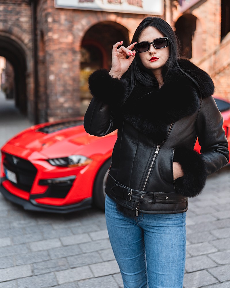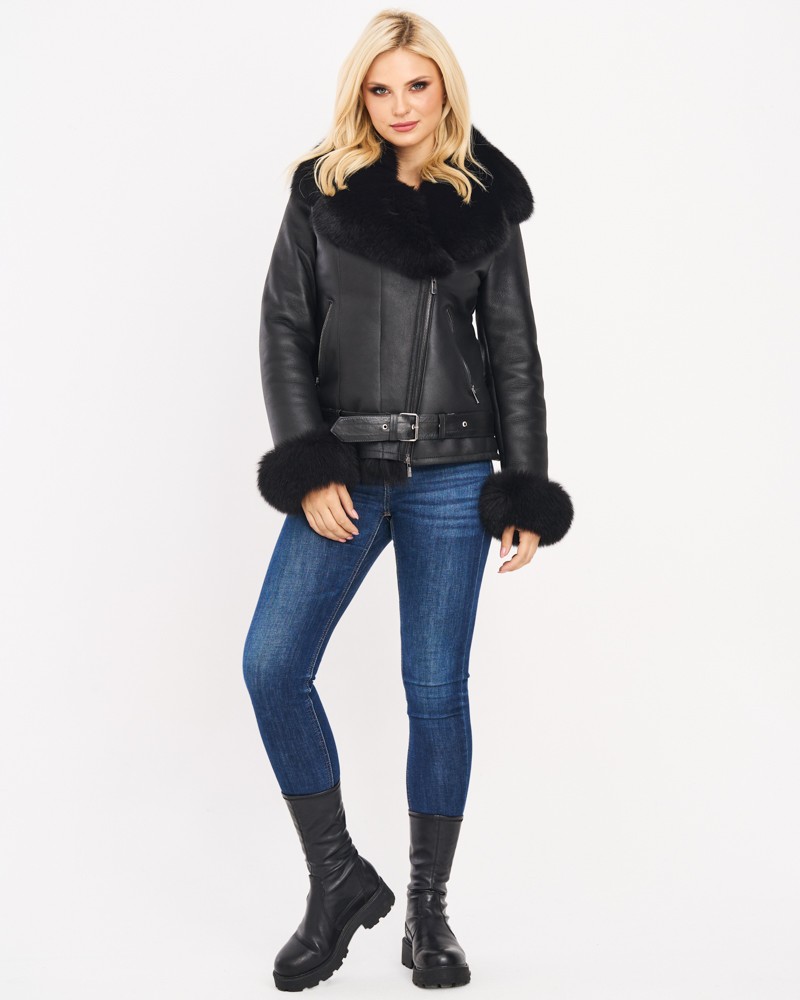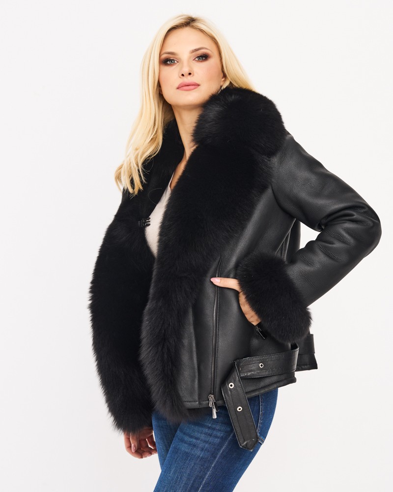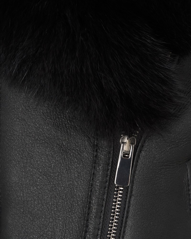 Prírodný dámsky kožuch Naomi čierny sa vyznačuje mimoriadne elegantným a ženským dizajnom. Vonkajšiu vrstvu projektu tvorí hladká, matná ovčia koža, ktorá bola pôsobivo obohatená pri golieri a manžetách rukávov prírodnou líščou kožušinou. Mäkká vnútorná vrstva kožucha je zárukou jedinečného tepelného komfortu, vynikajúcej tepelnej izolácie a ochrany pred mrazom a vetrom.