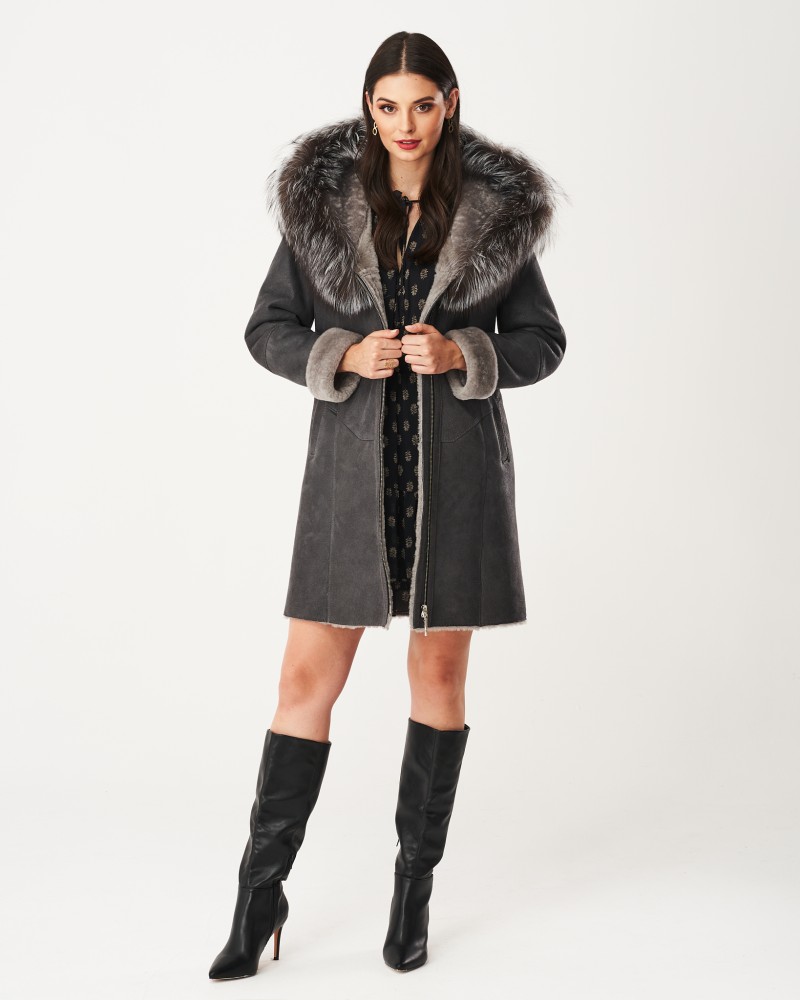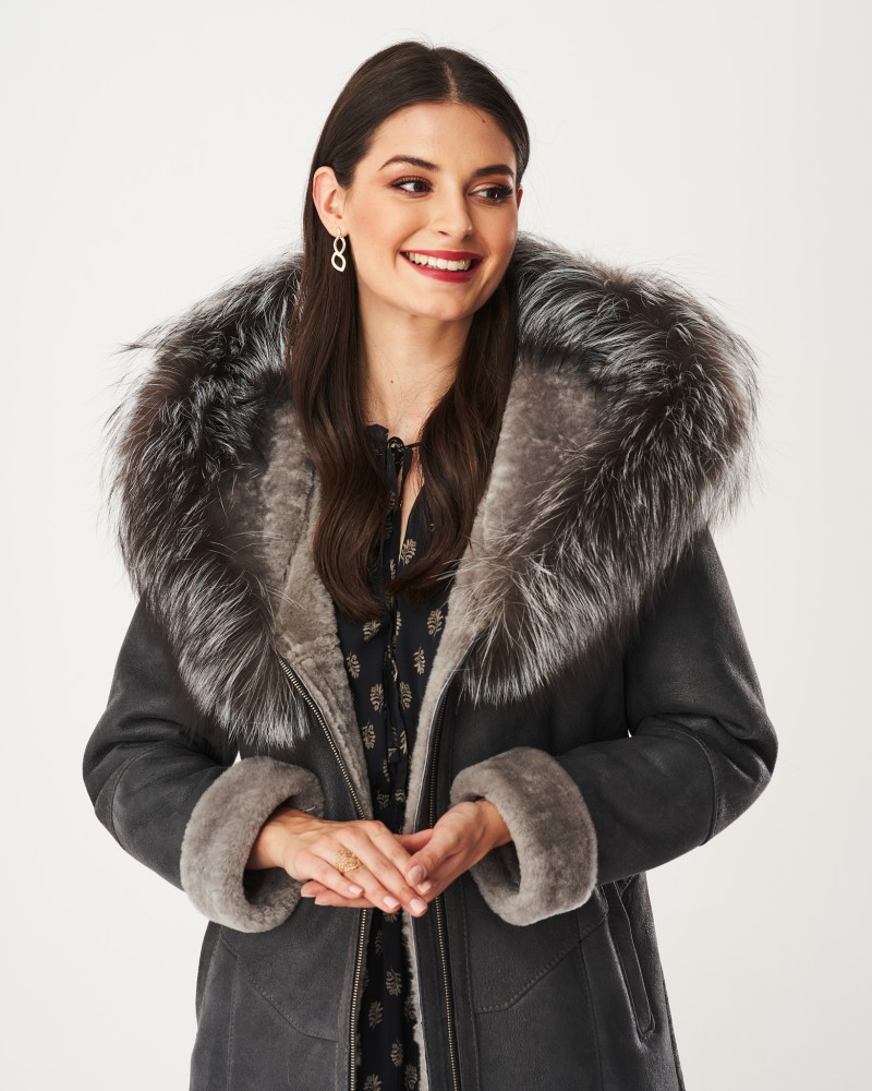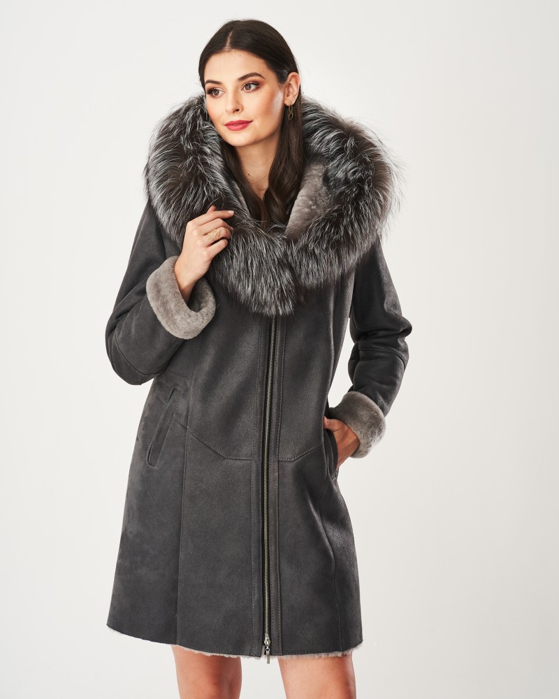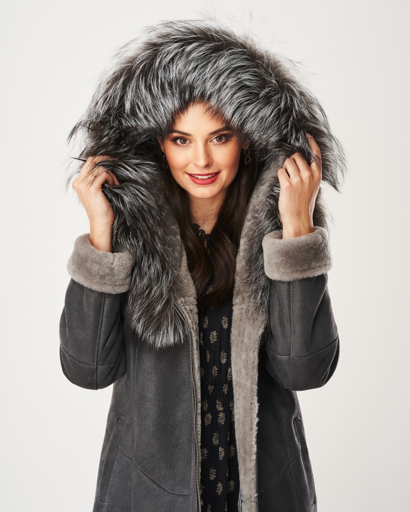 Dámsky kožuch Nestia má jednoduchý strih a dĺžku siahujúcu do polovice stehna, preto sa skvele prispôsobí každému typu postavy. Oplatí sa zvážiť jeho kombináciu s vysokými čižmami, pretože v tomto prevedení sa bude prezentovať mimoriadne priaznivo. Priestranná kapucňa, ktorá chráni pred nepriaznivým počasím, bola olemovaná nádhernou, úžasne mäkkou, prírodnou líškou, ktorá láka pritúliť sa k nej v skutočne chladných dňoch. Rukávy sú zakončené príjemným kožušinovým lemom, ktorý sa dokonale hodí k ostatným prvkom modelu.