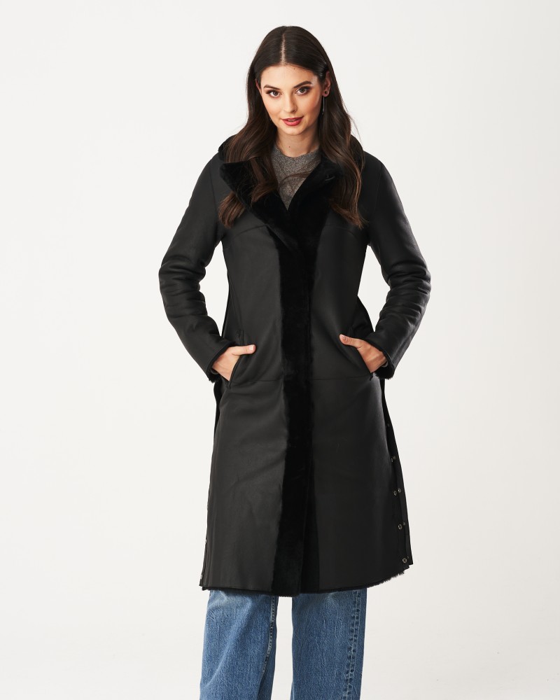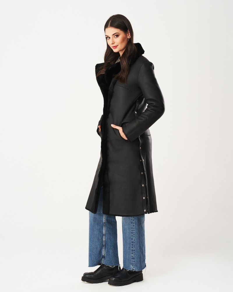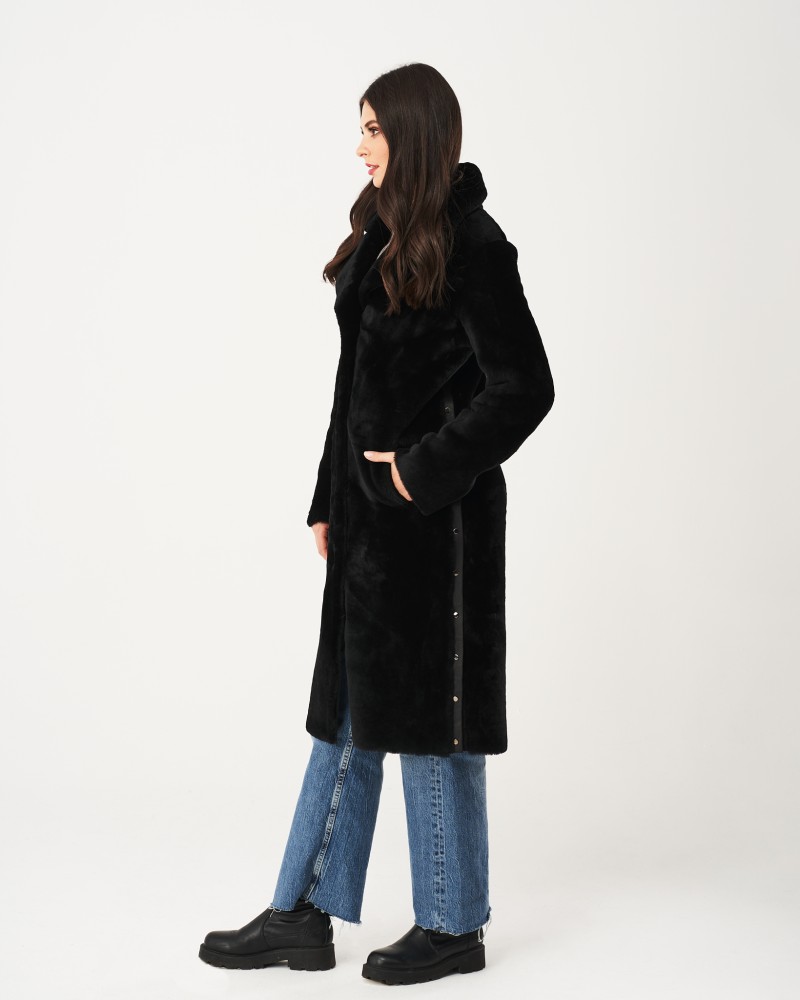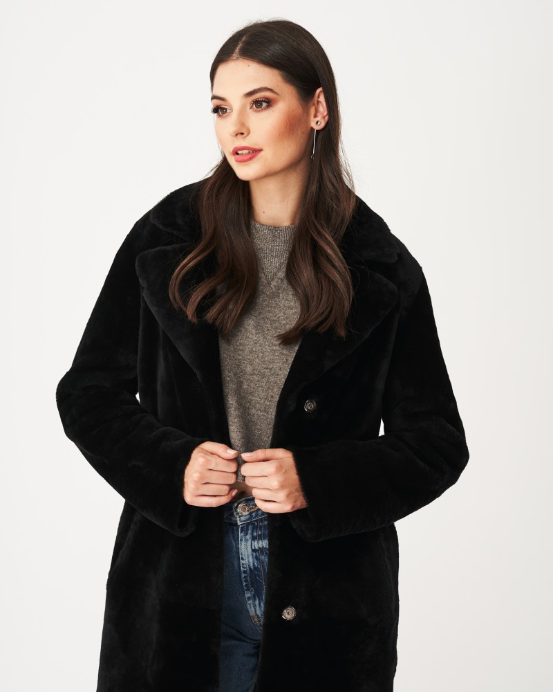 Dámsky kožuch Valentina v čiernej farbe je navrhnutý v tmavej, tlmenej farebnosti, a preto sa prispôsobí takmer každej štylizácii. Vďaka premyslenému dizajnu nemusíš vyberať vrchný odev podľa meniacej sa teploty. Keď vonku poriadne prituhne, obleč si kožuch na vonkajšiu stranu a užívaj si príjemnú, dokonale hrejivú kožušinu priamo pri tele. V dňoch, keď je počasie priaznivejšie, obleč si kožuch na vnútornú stranu, získavajúc tak viac priedušnosti. Treba zdôrazniť, že v každom prevedení sa model prezentuje úchvatne. Nosený na vonkajšiu stranu uchvacuje hladkosťou. Nosený na vnútornú, očarí príjemnou na dotyk, nádhernou kožušinou.
