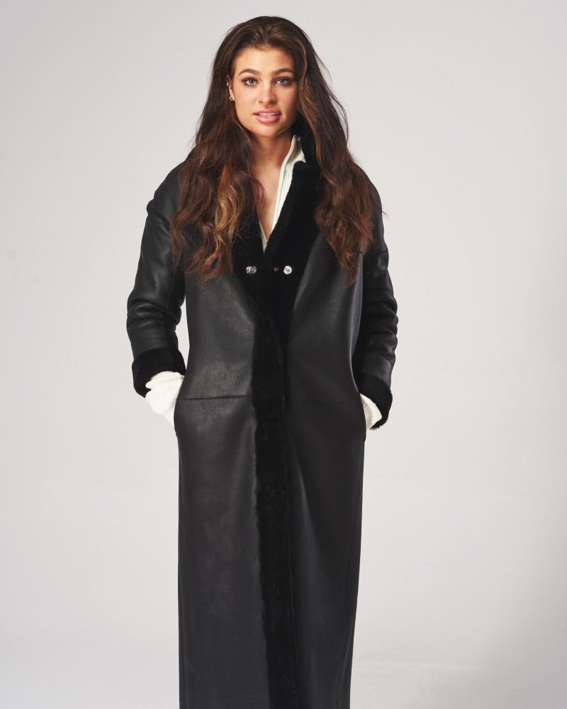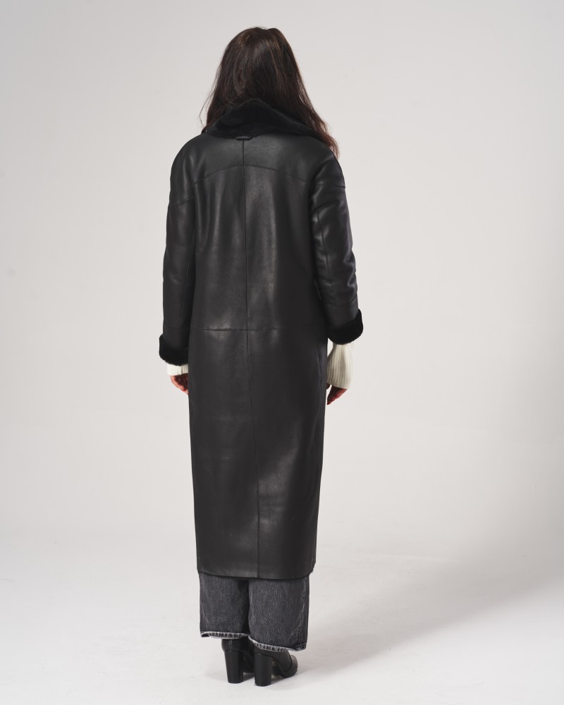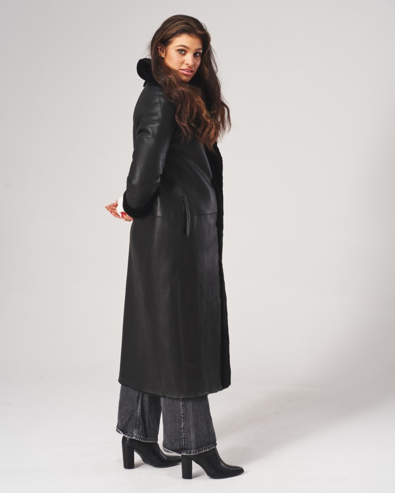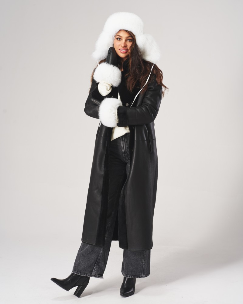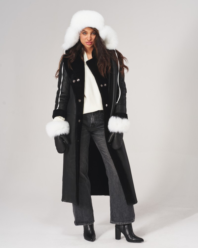 Dámsky kožuch Izumi má dlhý strih siahnuci takmer po členky, preto ideálne chráni celé telo pred chladom a opticky zoštíhľuje postavu. Uchvacujúca mäkkosť materiálov použitých na výrobu, teda prírodnej strihanej ovčej kožušiny a jej spodnej, lícovej vrstvy zvyšujú tepelný komfort a dodávajú modelu jedinečný charakter.