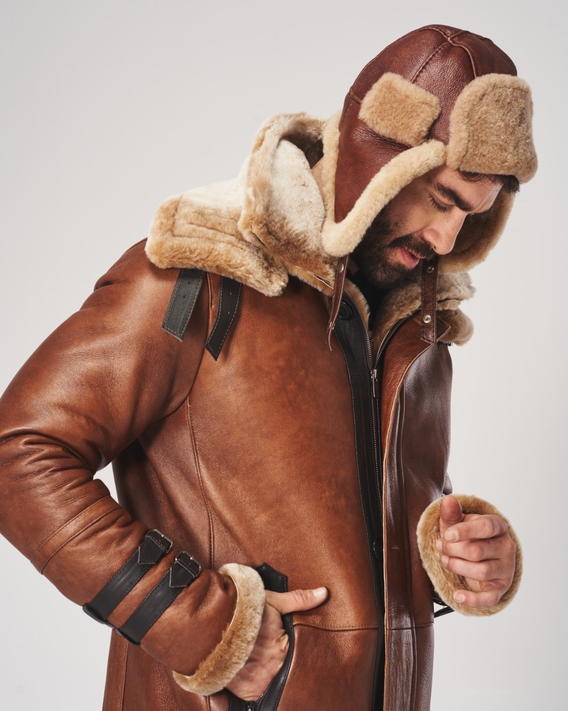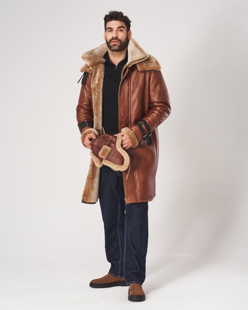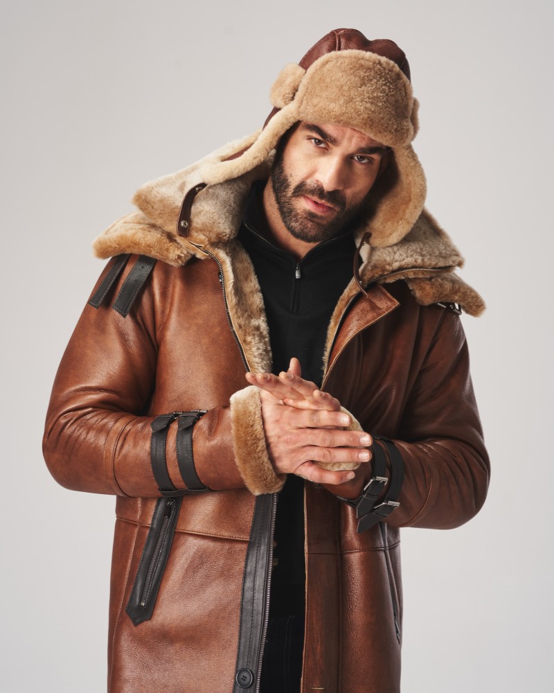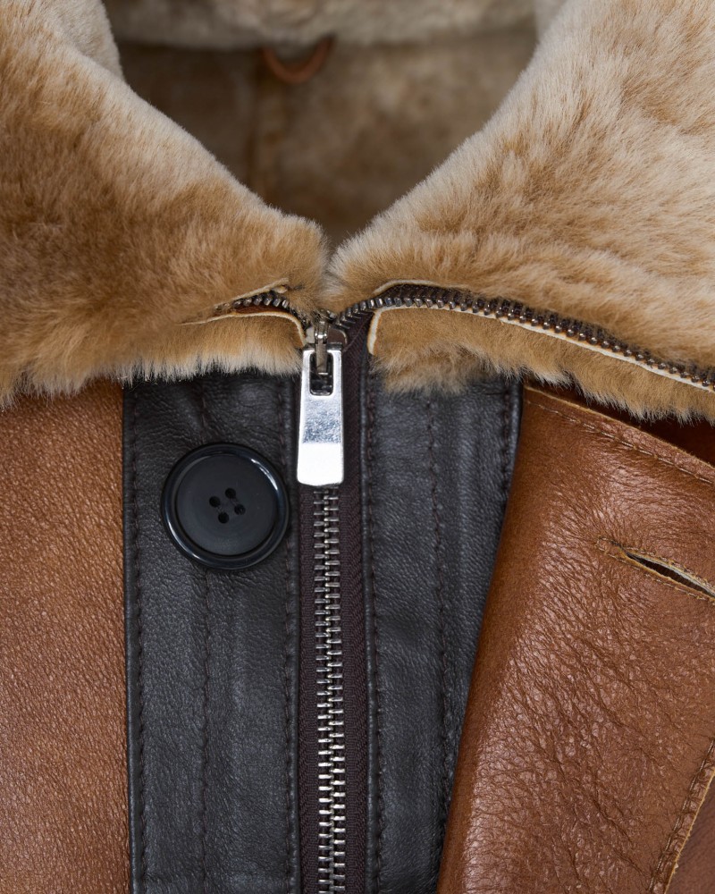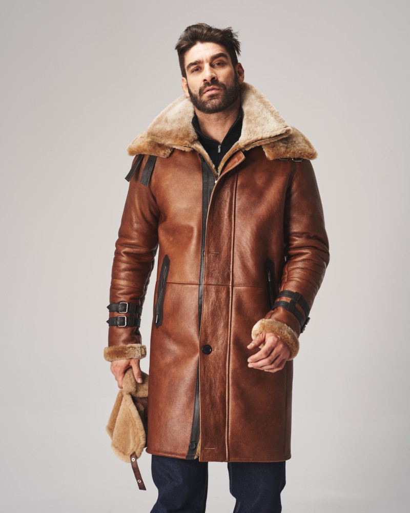 Pánsky kožuch Davos sa vyznačuje premysleným dizajnom, ktorý spája eleganciu s funkčnosťou. Jeho svetlohnedá farba dokonale ladí s karamelovým odtieňom mäkkej, ovčej koženej kožušiny prítomnej na manžetách a dvojitom golieri. Dopĺňajú ho minimalistické prešívania a vsadky z tmavohnedej kože, ktoré zdôrazňujú originálny charakter modelu. Vďaka dvojitému zapínaniu na zips a na lištu s gombíkmi a inovatívnemu riešeniu, akým je dvojitý golier poskytujúci dodatočnú ochranu pred zimou, je tento kožuch ideálnou voľbou na mrazivé dni, poskytujúc nielen teplo, ale aj atraktívny vzhľad. Veľký, prídavný golier je zapínaný na ozdobné pásiky z tmavohnedej kože a má možnosť odopnutia.