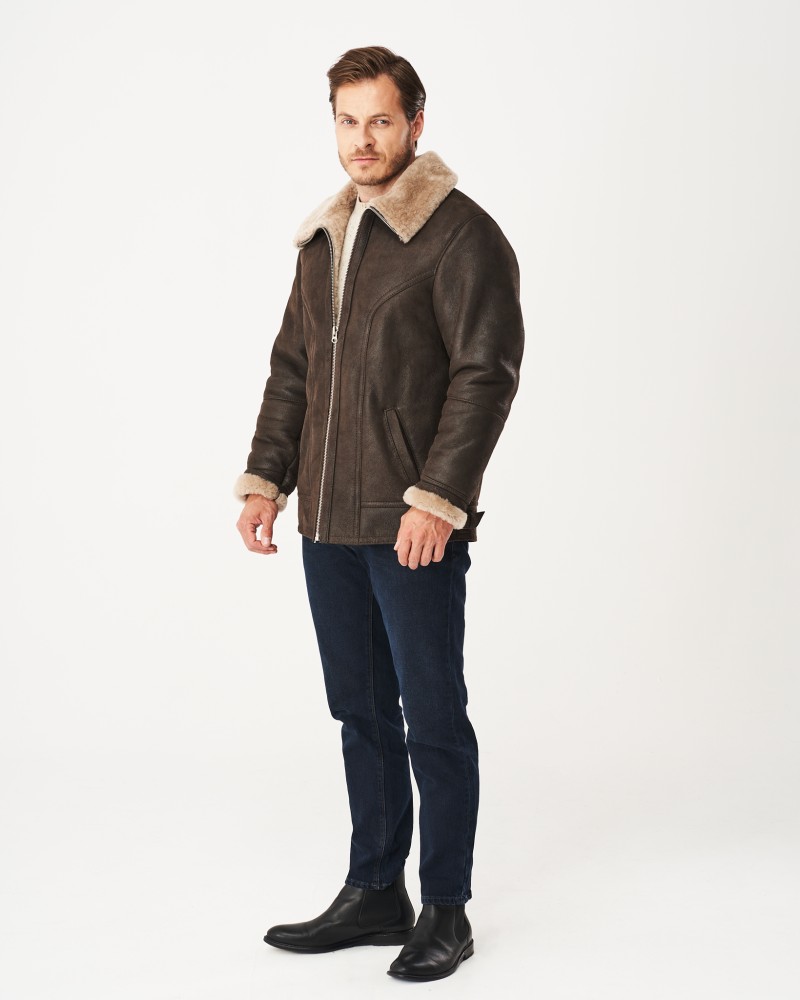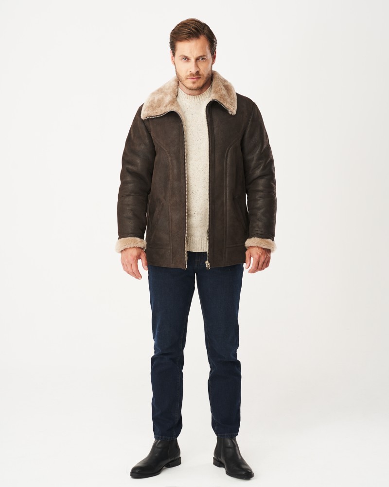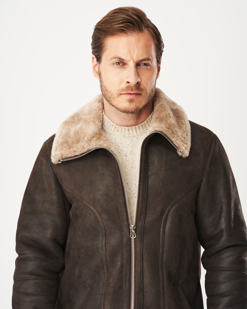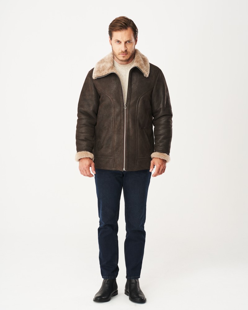 Hnedý pánsky kožuch Xavier bol navrhnutý v dĺžke po boky, v mierne priliehavom strihu, ktorý zvýrazňuje mužskú postavu a dodáva sebavedomie majiteľovi modelu. Prednú a zadnú časť aj dlhé, rovné rukávy zdobia decentné prešívania. Mäkký, kožušinový golier v svetlobéžovej farbe ľahko premeníš na vysoký stojatý golier, keď teplota vonku výrazne klesne. Odolný, kovový zips z nehrdzavejúcej ocele výborne izoluje telo od chladu, zimy a zrážok. Kožuch je vybavený dvomi bočnými, praktickými vreckami, ktoré Ti umožnia zohriať skrehnuté ruky. Dva remienky umiestnené dole po bokoch uľahčujú individuálne prispôsobenie šírky kožucha postave.